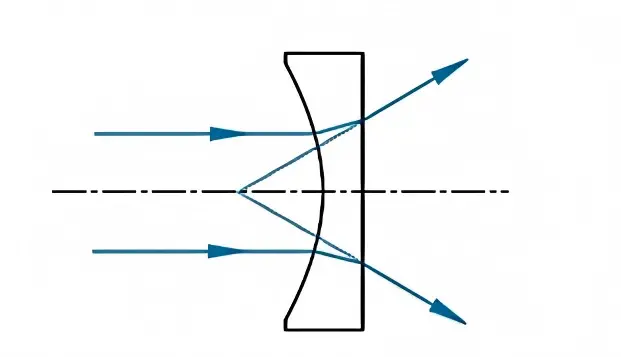 平凹透鏡使平行入射光線在透鏡出射側發散,因此具有負焦距。平凹透鏡的球面像差為負值,可用於平衡其他透鏡所產生的像差。與平凹透鏡類似,曲率面通常朝向物距最大處或無限遠共軛面,以最大程度地減少球面像差。